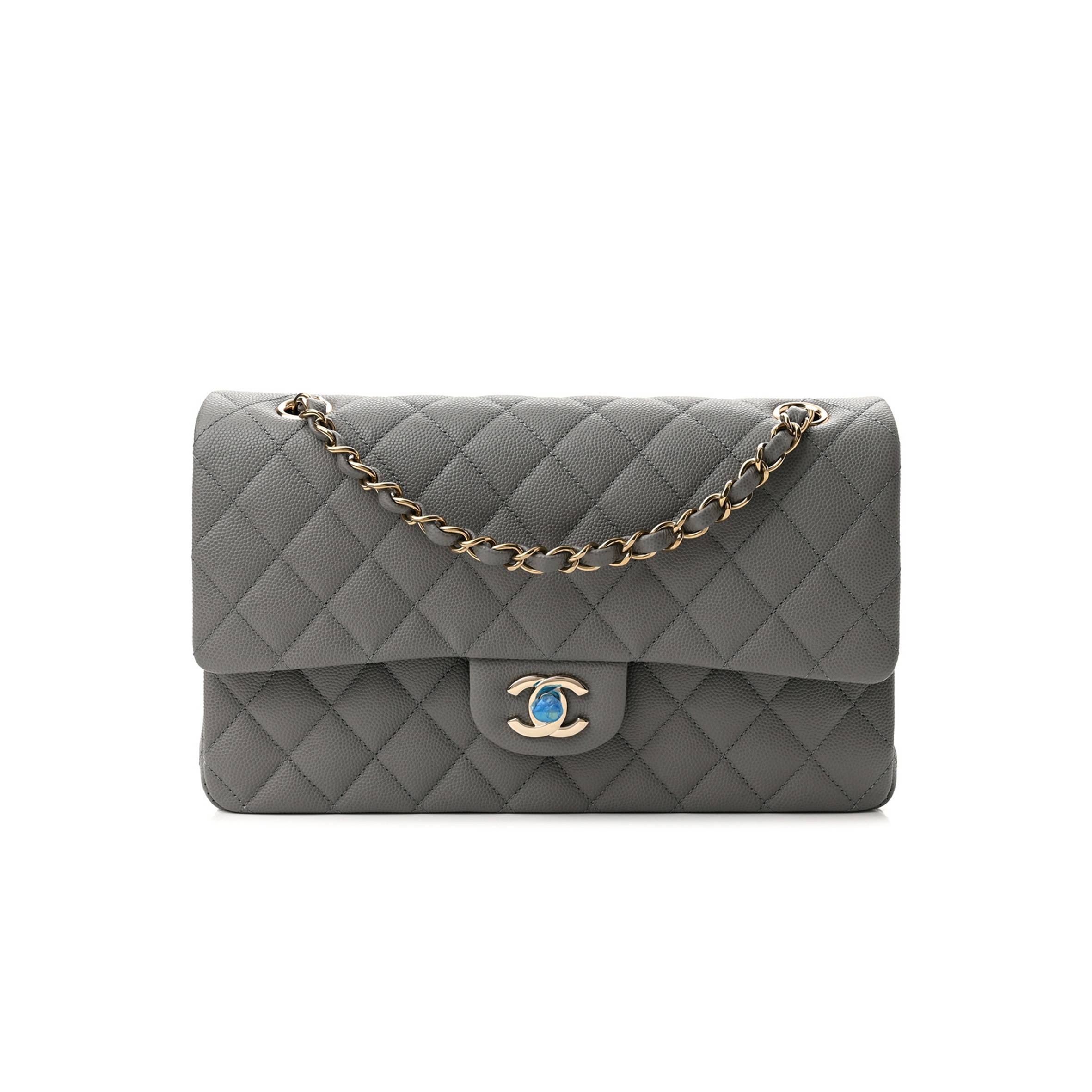 Ch*el caviar quilted medium double flap grey rose gold hardware (25*17*6cm)