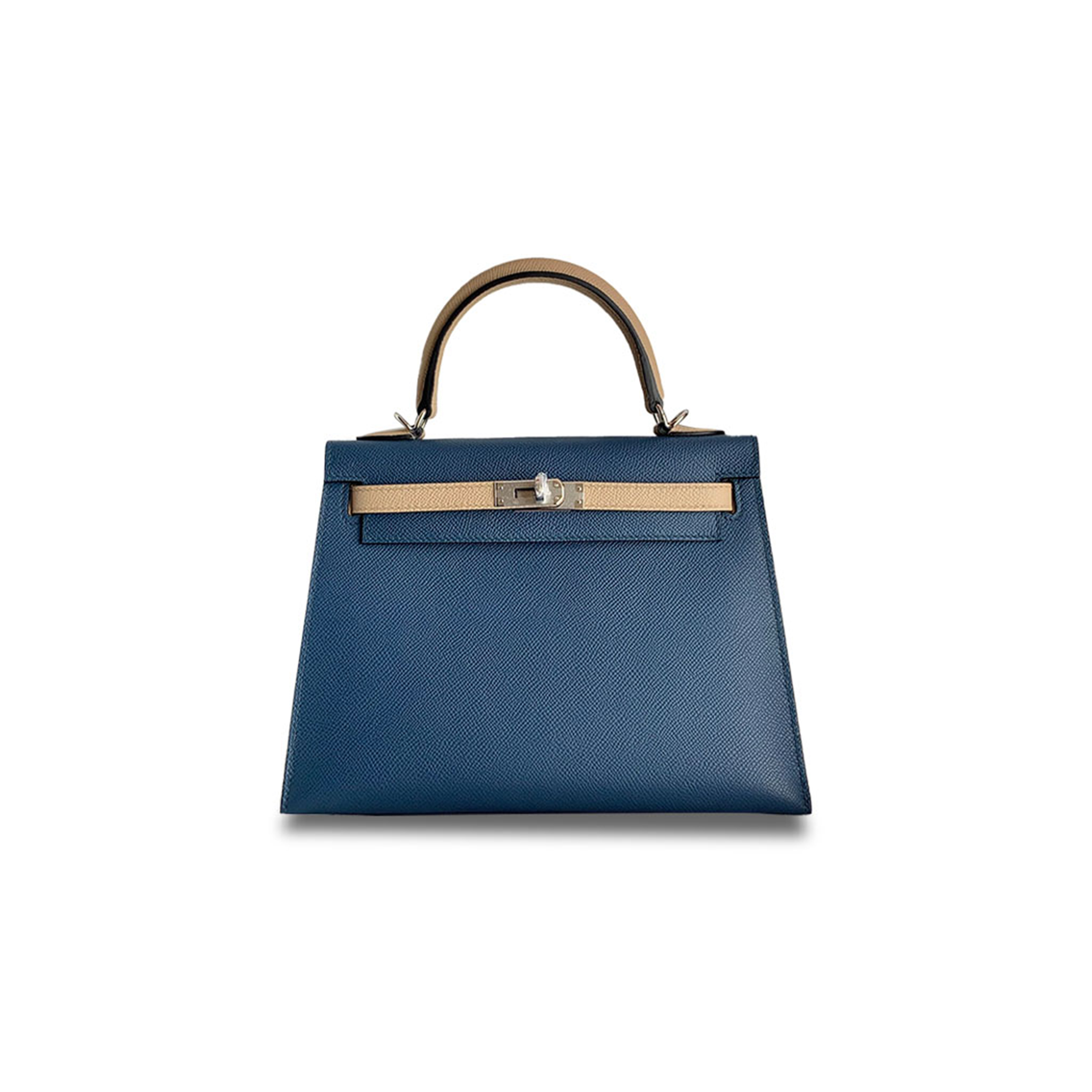 H**mes kelly 25 epsom dark blue windbreaker gray silver buckle (25*17*7cm)